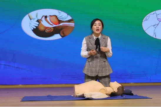 ▲戴晓瑞老师现场讲解《赛会应急事件处理与急救技能训练》