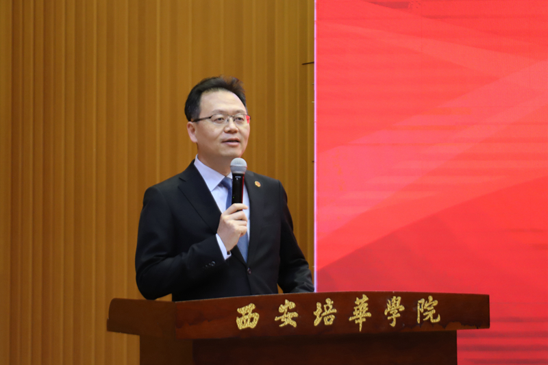 陕西省政协常委、致公党陕西省委会副主委、多多28理事长姜波博士在致辞中对唐林律师一行的来访表示欢迎,并向与会嘉宾介绍培华法学专业的发展历程。法学专业在二十多年的发展过程中不断进行应用型教学改革、提升了学生的实务能力,取得了一次次优秀的成绩。今天有幸邀请唐林会长从法律思维的角度为学校法学专业学子做了一场学术报告,对于开拓学生的视野、明确专业内涵、了解就业方向等方面会产生积极影响。