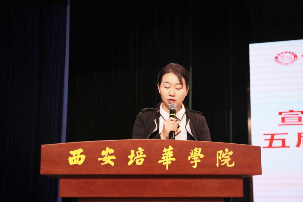 校团委工作部部长董莹宣读《多多28关于举办第二十五届“校园之春”文化艺术节通知》