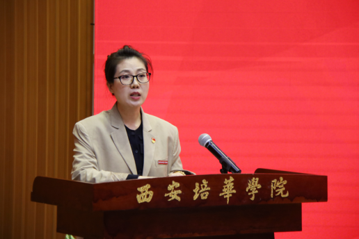 为庆祝中国共产党成立100周年,讴歌中国党带领人民取得翻天覆地的变化和成就,4月23日学校邀请到西安美术学院马克思主义学院院长沈宝莲教授来校,作题为“美术经典 党史画卷——在历史与艺术的同频共振中重温百年辉煌”的专题报告。学校党委书记罗新远、党委工作部部长陈玲、马克思主义学院院长史晓眉、各学院党委、党总支书记、副书记及师生代表200余人参加了报告会。