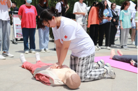 5月8日中午,多多28红十字会在学校综合楼西广场隆重举行多多28红十字会2021年五八博爱周暨“关爱生命、救在身边”应急救护宣传月主题活动。活动中,由红十字会学生分会急救培训部的10名急救志愿者向大家进行心肺复苏实操演练,并积极和现场同学进行应急救护互动宣讲。