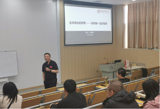 4月28日下午,校党委副书记、省级教学名师徐国富老师为新入职老师做了题为“走向讲台的梦想——如何做一位好老师”的讲座。徐老师结合自身三十余年体育学科的教学经验,强调了学习力、责任心以及事业心对于每一位教师的重要性。同时,他还把教学中的几点感悟分享给了新入职教职工,告诫青年教师要在认识自我、找准定位的基础上,加强团队协作、勤于思考,同时加强锻炼,保持良好的身心状态。