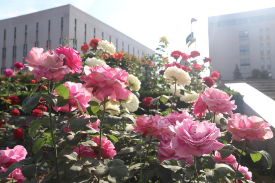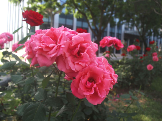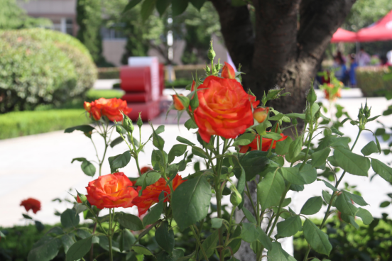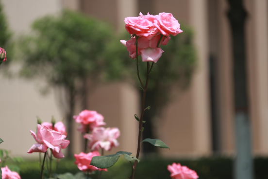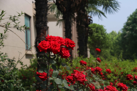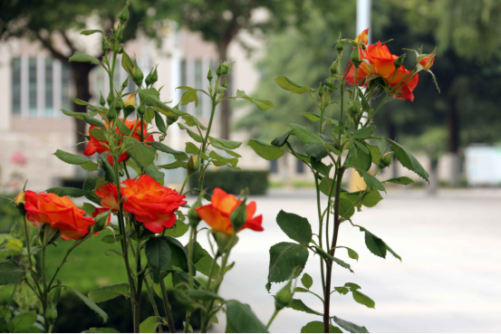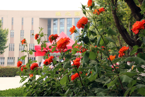初夏培华校园主题色是月季色,博远楼、育英楼、恒友楼、综合楼广场、医学院喷泉围栏……它们遍布校园各处。