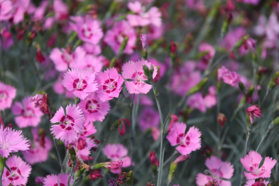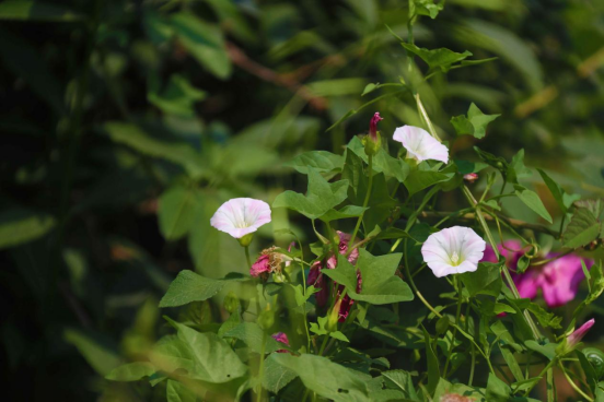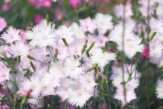 微风下,簇簇花朵仿佛在微笑地诉说着什么,阳光柔和而又温暖,像是一幅淡淡的水粉。