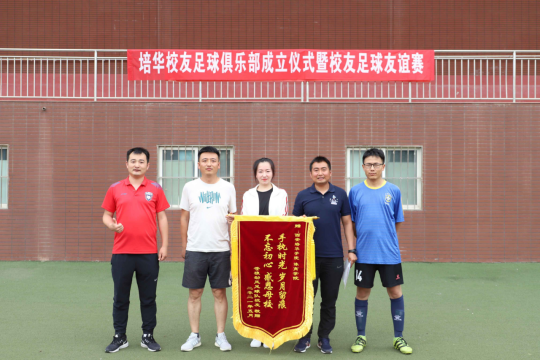 会长高正兴代表历届培华足球队校友为母校赠送了锦旗,他在发言中表示,校友足球俱乐部的成立是母校对校友们关怀的体现,旨在助力校友劳逸结合,加强交流,共叙情谊。希望广大校友依托校友足球俱乐部平台,共同努力,为母校发展贡献力量。