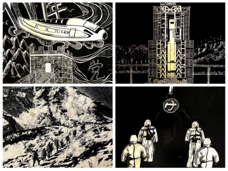 建筑与艺术设计学院工艺美术专业的学生将专业知识和“学党史”活动相结合,以时代印记题材开展了《红船精神》《红军·长征》《航天筑梦》等主题黑白墨刻作品创作活动,同学们用手中的刻刀和画笔,展示党的百年风华,抒发自己爱党爱国的拳拳之心。