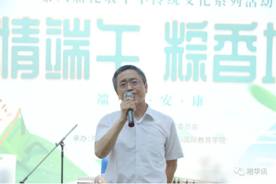 汉语言文学专业教师赵维森老师为师生讲述端午节的起源和由来。他讲到端午节是中国重大传统节日,端是"开端"、"初"的意思,初五可以称为端五,与春节、清明节、中秋节并称为中国汉族的四大传统节日。端午节起源于举行图腾祭祀的节日,后因战国时期的楚国诗人屈原在这一天因为楚国首都郢都被秦国攻破而投汨罗江而死,为树立忠君爱国标签将端午作为纪念屈原的节日。