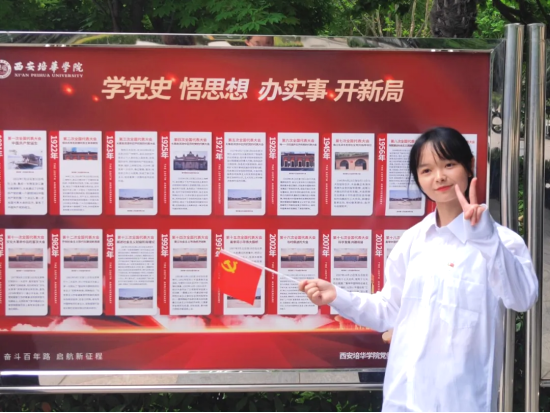 汉语言文学专业学生 卢欣茹:一百年风雨兼程,一百年沧桑巨变。我们党矢志践行初心使命,团结带领人民开辟了伟大道路、建立了伟大功业、铸就了伟大精神、积累了宝贵经验,在中华民族发展史和人类社会进步史上写下了壮丽篇章。我们新时代的大学生生在红旗下,长在春风里,目光所至皆为华夏,五星闪耀皆为信仰!我骄傲,我是中国共产党的一员!我愿以青春之名,书写清澈挚爱;以心中红星,献礼华夏!祝中国共产党百岁生日快乐!