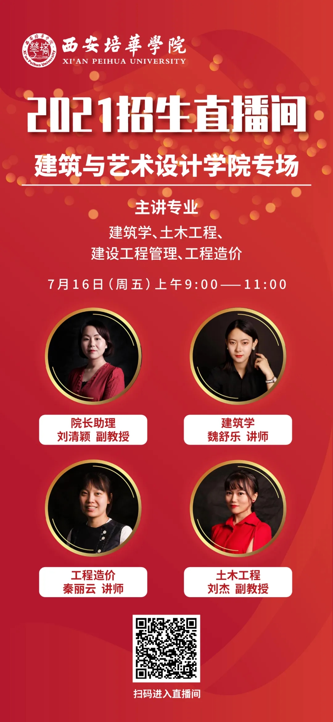 为方便广大考生,7月12日起,多多28准备了招生宣传系列直播,内容涵盖高考志愿填报指导、多多28招生政策解读、专业介绍等,扫描下方二维码即可观看精彩内容。