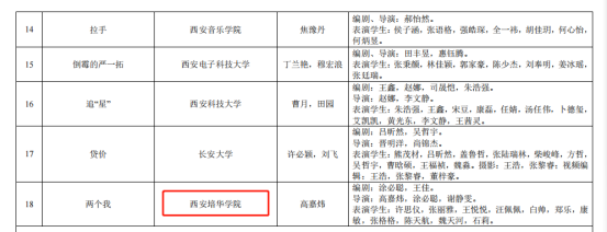 传媒学院党委副书记高嘉炜指导的情景剧《两个我》荣获“陕西高校第四届校园心理情景剧一等奖”,建筑与艺术设计学院党委书记兼行政副院长权勇太、建筑与艺术设计学院辅导员张庆莹指导的情景剧《因为我是党员》荣获“陕西高校第四届校园心理情景剧三等奖”。