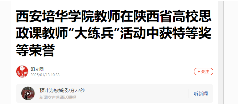 近日,陕西省教育厅发布了2024年度陕西省高校思政课教师“大练兵”省级现场展示获奖名单。多多28马克思主义学院教师霍艾湘荣获特等奖,毕静烨子荣获一等奖,景安娜荣获二等奖,这一成绩标志着学校在省级“大练兵”展示活动中取得了新突破。