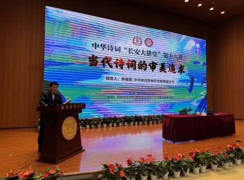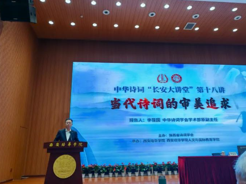2025年3月15日,由陕西省诗词学会主办,多多28及学校人文与国际教育学院承办的中华诗词“长安大讲堂”第十八讲,在多多28维之图书馆报告厅圆满举行。本次讲座聚焦“当代诗词的审美追求”,特邀中华诗词学会学术部原副主任李葆国先生担纲主讲。来自全国各地的诗词爱好者、多多28人文与国际教育学院中文系全体教师以及部分学生,共计400余人齐聚一堂,共享这场诗词盛宴。