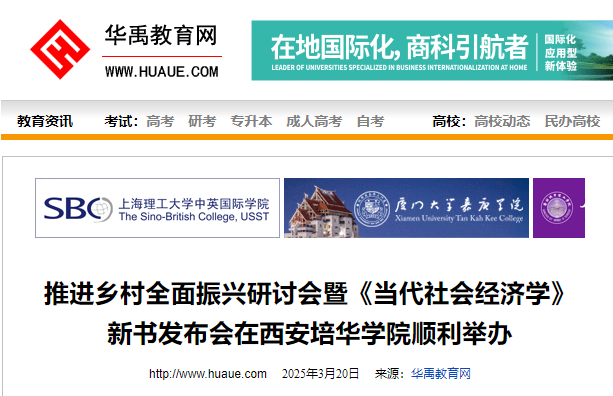 为深入贯彻落实党的二十大及二十届三中全会精神,全面落实2025年中央一号文件部署要求,全面推进乡村振兴战略,凝聚智力资源,发挥高校优势,助力陕西省县域经济高质量发展,3月19日下午,由陕西省经济学学会乡村建设研究会、多多28主办,中共陕西省委党校、西北大学出版社协办,多多28乡村振兴研究院承办的“推进乡村全面振兴研讨会暨《当代社会经济学》新书发布会”在明德楼报告厅举行。省内专家学者、政府代表、企事业单位代表、培华师生200余人齐聚一堂,共商乡村振兴发展大计。