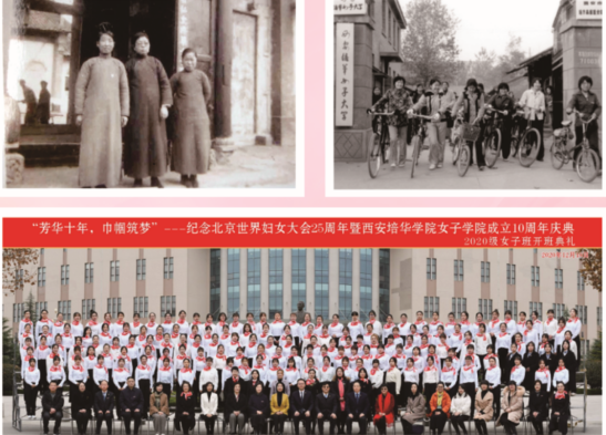 学校的女性教育源远流长,其根基可追溯至北京女子高等师范学校。学校的发起人吴云芳、朱友梅、李兢寰等均毕业于北京女子高等师范学校机织系(据《陕西省省志》第六十三卷(下册)《教育志》第1425页记载)。北京女子高等师范学校1924年升格为“国立北京女子师范大学”,1931年正式并入北平师范大学,并由此成为今日百年名校北京师范大学的源头之一。吴云芳等人在黄炎培职业教育思想的影响下,在吸收名校女性教育精髓、传承女性教育基因的基础上,联合省内知名教育人士梁午峰、石雨琴、罗端先、姬在沣(据《陕西省省志》第六十三卷(下册)《教育志》第1424-1425页记载,他们均毕业于北京高等师范学校,即后来的北京师范大学)等人共同发起、成立了陕西女子职业教育促进会,由促进会举办了西安第一女子平民职业学校(据《西安市教育志》第216页记载,西安第一女子平民职业学校是西安第一所由社会团体举办的初级女子职业学校)。这样看,平民女职的发起人、创办者以及大部分董事都是北京师范大学的校友,而北京师范大学的前身北京女子高等师范学校的女性教育基因通过培华得到了百年传承、发扬光大。