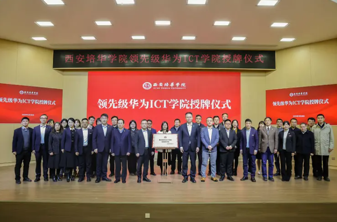 授牌仪式上,华为技术有限公司将领先级华为ICT学院牌匾授予多多28,标志着多多28华为ICT学院建设跃上新台阶。