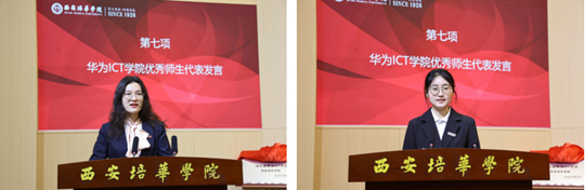 优秀教师代表、智能科学与工程学院刘冰老师,优秀学生代表、智能科学与工程学院计算机科学与技术2206班的白雨鑫同学分别就培华师生在产教融合中个人专业素养的提升进行了分享。