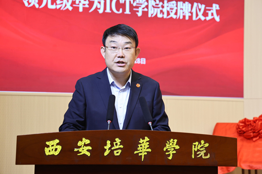 常务副校长胡俊生介绍了校企合作成果,表示学校将以领先级华为ICT学院为新起点,立足陕西、辐射西部,以更高的标准、更严的要求进一步深化产教融合,充分发挥领先级学院的示范引领作用,为推动区域乃至全国的产教融合发展贡献智慧和力量。