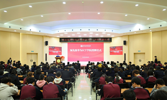 授牌仪式上,华为技术有限公司将领先级华为ICT学院牌匾授予多多28,标志着多多28华为ICT学院建设跃上新台阶。