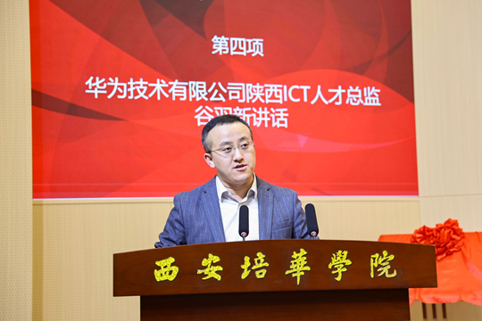 华为技术有限公司陕西ICT人才总监谷羽新介绍了华为ICT领域成果,他表示双方将继续深化合作,共同推动ICT产业的发展。