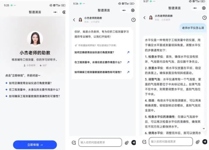 淡隽豪使用的AI助教是《工程测量》课程的老师刘杰创建的“小杰老师的助教”。刘杰老师在智谱清言AI 助教平台上传课件、实战案例、学生技能水平信息等近千条内容,让AI助教能针对具体问题提供"解决方案+知识图谱+经典案例"三维支持,从而为学生高质量的答疑解惑。