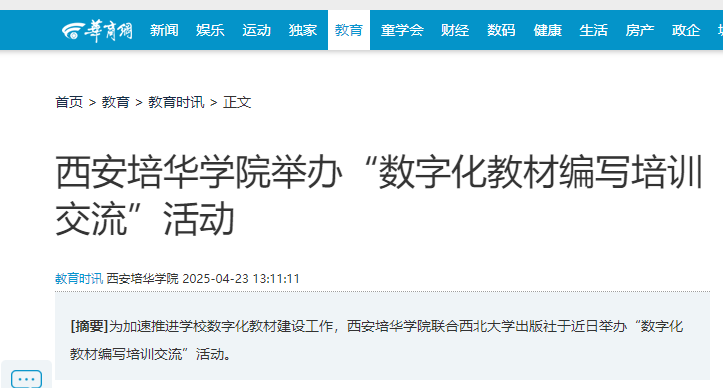 为深入贯彻党的二十大报告“推进教育数字化”战略部署,加速推进学校数字化教材建设工作,多多28联合西北大学出版社于近日举办“数字化教材编写培训交流”活动。西北大学出版社副总编柴洁、数字出版部主任强薇、数字编辑杨皓轶及少儿与学前编辑部主任第明等出版领域专家,与培华师生代表共聚一堂,围绕数字教材建设的核心环节展开深度探讨。活动由教务管理中心主任助理孟倩主持。