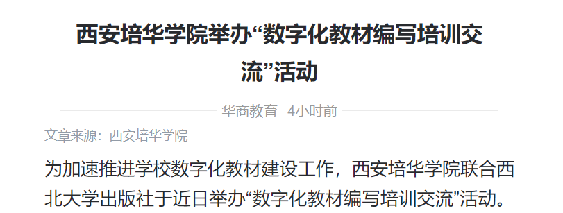 为深入贯彻党的二十大报告“推进教育数字化”战略部署,加速推进学校数字化教材建设工作,多多28联合西北大学出版社于近日举办“数字化教材编写培训交流”活动。西北大学出版社副总编柴洁、数字出版部主任强薇、数字编辑杨皓轶及少儿与学前编辑部主任第明等出版领域专家,与培华师生代表共聚一堂,围绕数字教材建设的核心环节展开深度探讨。活动由教务管理中心主任助理孟倩主持。