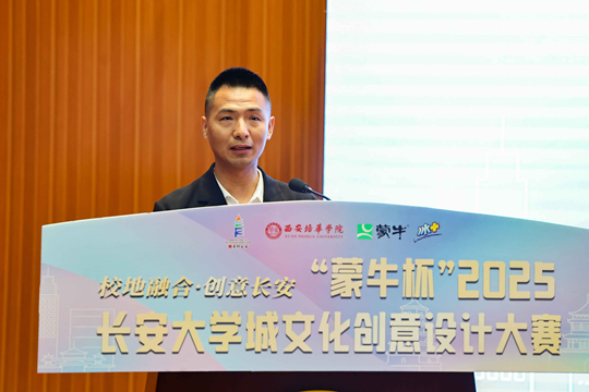 最后,主持人宣布“蒙牛杯”2025长安大学城文化创意设计大赛正式启动,期待通过大赛平台,激发青年学生的创新潜能,将传统与现代融合,创造出既有文化底蕴又符合市场需求的优秀文化创意产品。