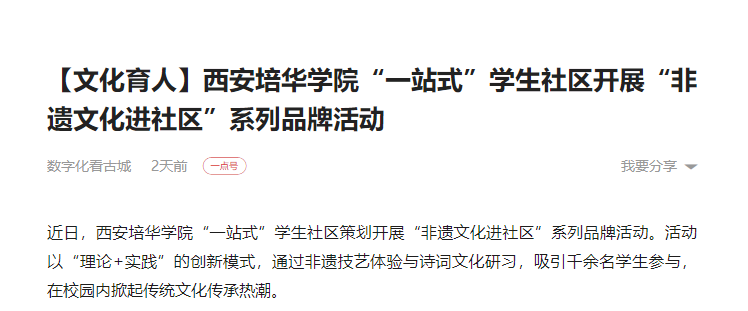 非物质文化遗产承载着民族的历史记忆与文化精神,文化传承,青年当有为。从点翠的雍容到螺钿的绚烂,从拓染的质朴到花灯的喜庆,每一项技艺都是先辈智慧的结晶。青年大学生应加强中华传统文化的学习,增强文化自信与文化认同,争做传统文化的传承者与创新者。未来,学生社区将持续搭建传统文化传播平台,推动传统文化在校园落地生根。