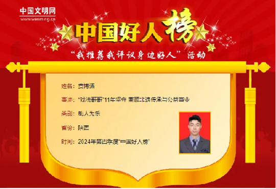 他在传承非遗与公益事业上的突出贡献,得到了社会的广泛认可,在2024年,他登上中国好人榜。