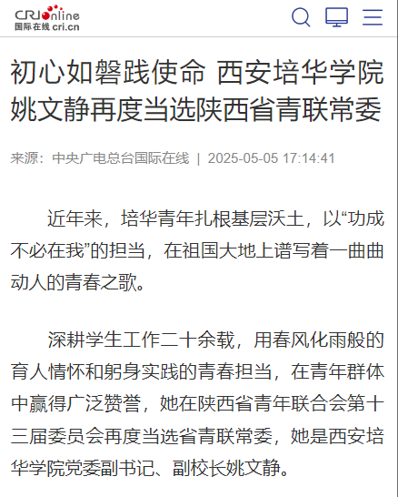 “思政教育不是单向的灌输,而是生命的唤醒。”这位青联常委始终保持着教育者的清醒与热忱,从“陕西省三八红旗手”到“五一巾帼标兵”,再到如今的省青联常委,多重身份见证着她“成就学生是最幸福的事”的教育追求。