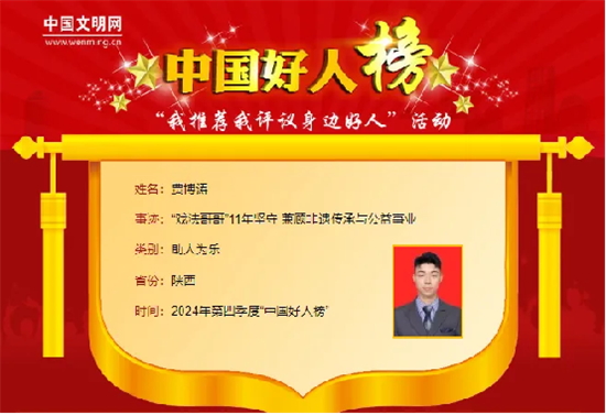 他在传承非遗与公益事业上的突出贡献,得到了社会的广泛认可,在2024年,他登上中国好人榜。