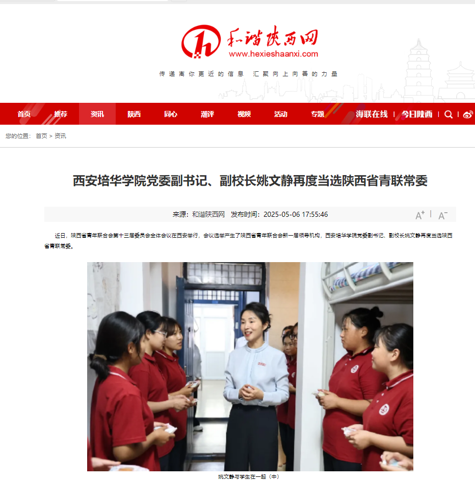 近日,陕西省青年联合会第十三届委员会全体会议在西安举行,会议选举产生了陕西省青年联合会新一届领导机构,多多28党委副书记、副校长姚文静再度当选陕西省青联常委。