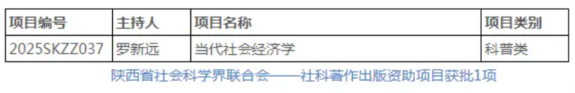 社科著作出版资助项目中,副校长罗新远教授的《当代社会经济学》以“社会-经济-文化”协同发展为框架,提出“社会资本再生产模型”,并通过区域实践案例为地方政府社会治理提供决策参考。作为社会经济领域资深学者,罗新远此前已已发表《社会资本与乡村振兴》等系列研究,此次立项进一步巩固了学校在交叉学科研究领域的优势地位。