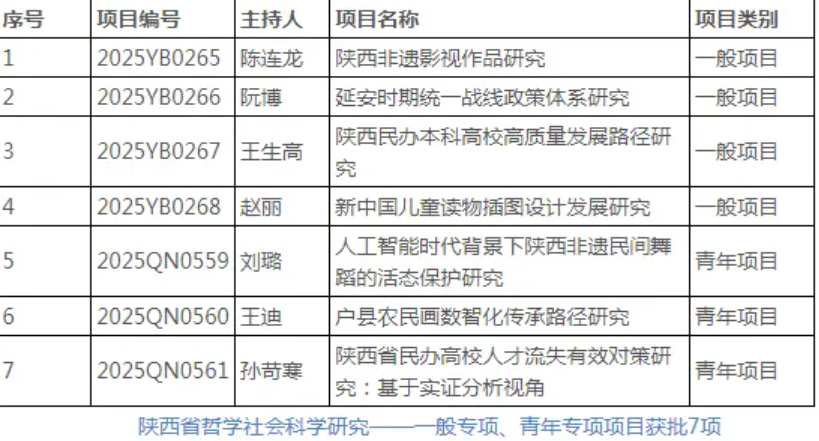 在获批的4项一般专项课题中,研究视角紧密围绕区域经济社会发展重大议题。其中,传媒与设计学院陈连龙教授团队主持的《陕西非遗影视作品研究》项目,创新性构建“要素-机制-目标”研究范式,为陕西省非遗影视产业数字化转型提供理论支撑与路径参考。青年专项课题的3项立项,标志着学校青年科研队伍加速成长。传媒与设计学院青年教师王迪领衔的《户县农民画数智化传承路径研究》,通过田野调查与大数据分析,提出文化保护与产业创新协同发展的新模式,为传统民间艺术活化传承提供典型案例。
