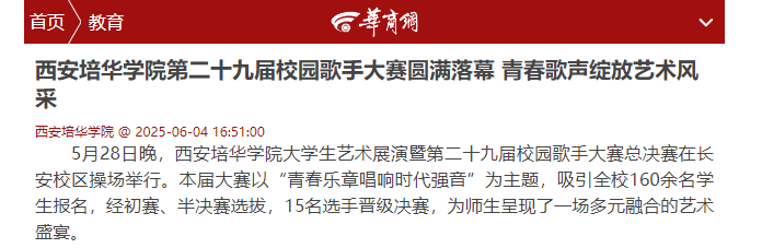 本届大学生艺术展演暨校园歌手大赛由校团委、艺术教育中心联合主办,首次创新采用“艺术展演+歌手竞赛”的融合模式,为学生搭建了更为广阔的才艺展示与交流平台。活动吸引了全校各学院数千名师生热情参与,活动同步开启线上直播,反响十分热烈,充分展现了培华学子蓬勃向上的精神风貌和对艺术的炽热追求。
