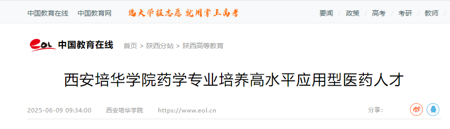 专业与空军军医大学药物研究所、陕西省中医药研究院、陕西省食品药品检验研究院、陕西省产品质量监督检验研究院、西安交通大学第一附属医院、陕西慧康生物科技公司、陕西力邦制药有限公司等多家企业开展校企合作,打造一流人才实践基地,构建了“产学研医用”全链条实训体系,依托科研院所开展前沿课题,联合检验机构强化质量检测,借助医疗机构深耕临床药学,协同企业开展生产实训,培育了大量复合型高水平应用型药学人才。(作者:方欢乐)