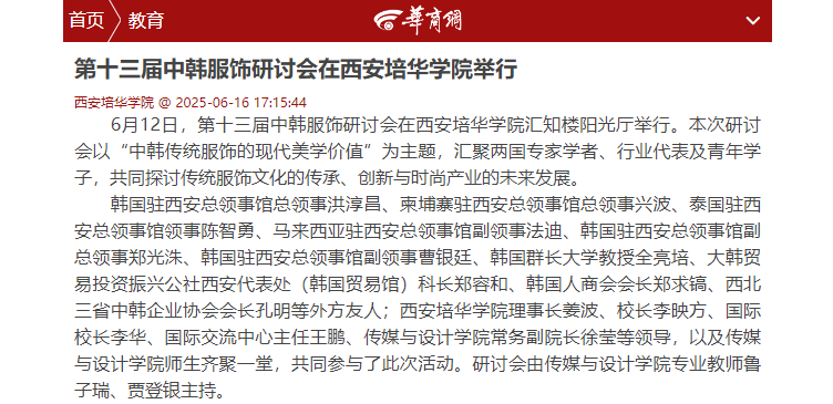 它不仅是一场关于服饰文化的深度思想碰撞与交流盛会,更为中韩双方构筑起一个文化共赏、携手成长、协同发展的坚实舞台。通过这一平台,有力推动具备国际视野与深厚文化涵养的创新型设计人才培养,为中韩服饰文化的交融互鉴、创新发展书写下浓墨重彩且坚实有力的崭新篇章。