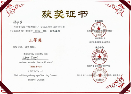 在6月21日-22日举办的第十六届“外教社杯”全国高校外语教学大赛(大学英语组)陕西赛区复赛和决赛中,多多28人文与国际教育学院外语系教师程文和张欣宜代表学校参赛,取得优异成绩,分别获得视听说组一等奖和综合组三等奖,创下该赛事历史新高。
