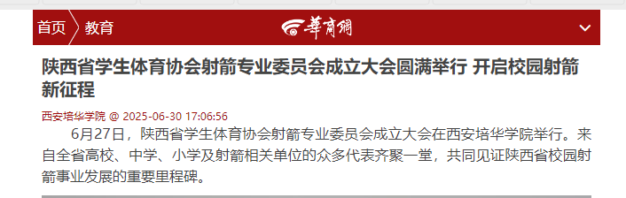 陕西省学生体育协会射箭专业委员会的成立,标志着陕西省校园射箭运动步入规范化、专业化发展轨道。未来,委员会将充分发挥职能作用,搭建交流合作平台,让更多学生参与到射箭运动中,享受运动乐趣、增强体质、健全人格、锤炼意志,为建设体育强省、教育强省添砖加瓦。