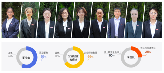 软件工程专业拥有一支教学能力强、科研水平高、实战经验丰富的师资队伍。教师中硕士研究生及以上学历达100%,其中博士及在读博士占比25%,高级职称教师占比56%,具备企业一线研发背景的教师占比高达66%。专业推行双师共育培养战略,锻造“双师型”师资队伍,教师深度融入头部企业实践,将产业前沿技术反哺课堂教学;团队将鸿蒙系统开发、AI数据分析等前沿技术深度融入课堂教学,并依托真实项目案例展开教学,使学生在校期间即可体验企业级开发全流程,切实达成“课堂即职场”的培养目标。