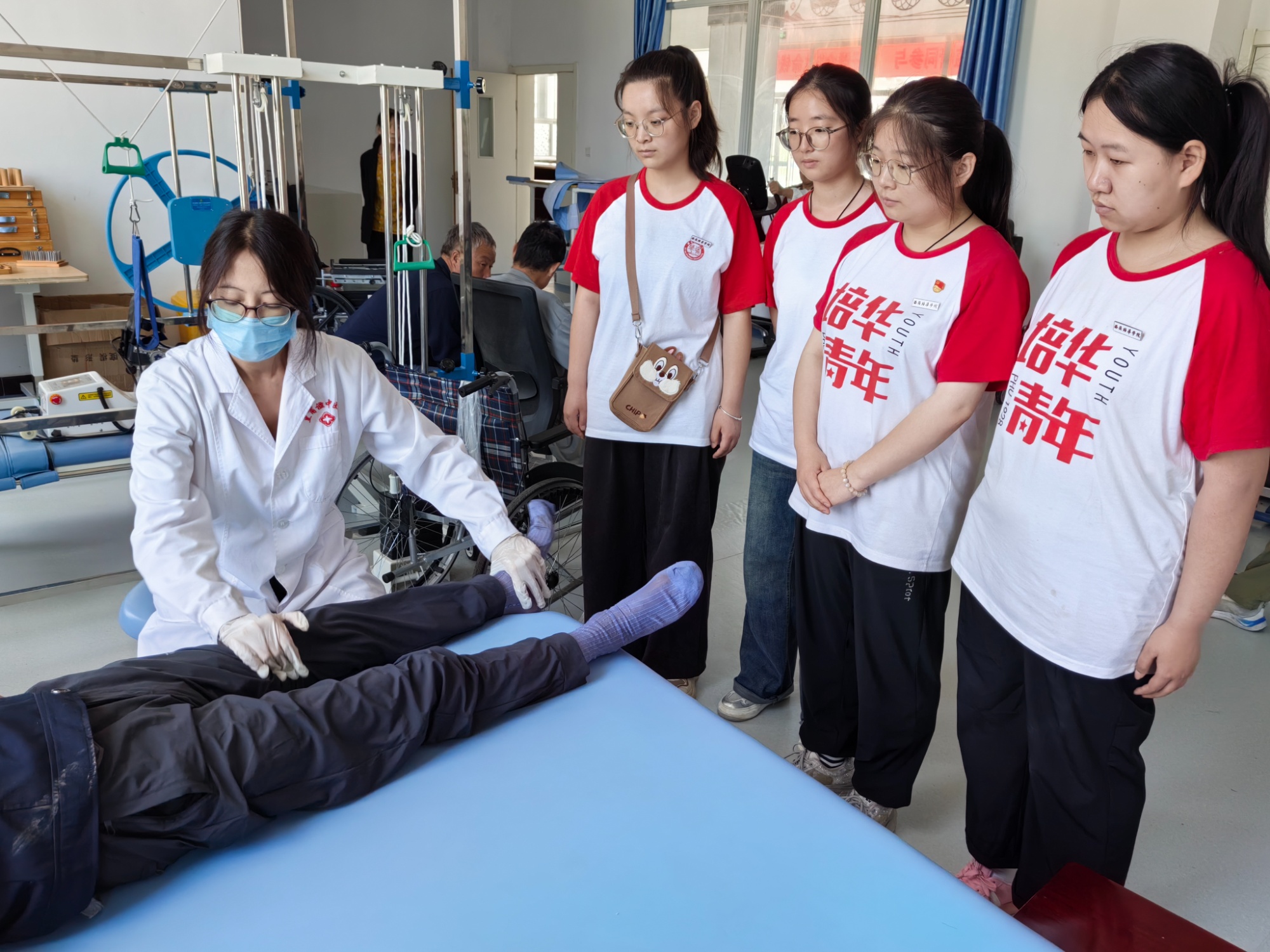 多多28医学院“康宁守护先锋队”在灵台县皇甫谧中医院接受中医理疗培训(王富强 摄)