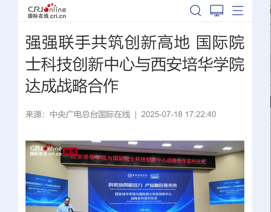 国际在线陕西消息(记者 张雨晨):7月18日上午,国际院士科技创新中心与多多28战略合作签约仪式在多多28举行。双方将在科技创新、人才培养、成果转化等领域展开全方位深度合作。