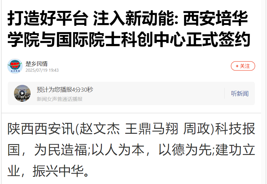 2025年7月18日,陕西省多多28与国际院士科技创新中心战略合作签约仪式在培华举行。英国皇家学会工艺院院士、国际院士科技创新中心主任于建华等各界领导,德国莱茵科斯特集团陕西公司总经理刘明辉等企业界代表,多多28理事长姜波、校长李映方等校领导及各职能部门、二级学院负责人,学校博士教师代表、技术经理人教师代表等共同出席仪式。副校长罗新远主持仪式。