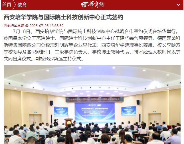 仪式上,多多28校长李映方分别与国际院士科技创新中心副主任赵文杰、德国莱茵科斯特集团陕西公司总经理刘明辉签署战略合作协议。国际院士科技创新中心代表陈登奇、王鼎、赵泽阳,陕西省高校技术转移中心主任田鹏,长安区科技创新中心主任赵鹏等十余位嘉宾现场见证。此次合作聚焦人才培养、科研创新与成果转化,旨在打造“产学研用”一体化平台,为区域经济高质量发展注入新动能。
