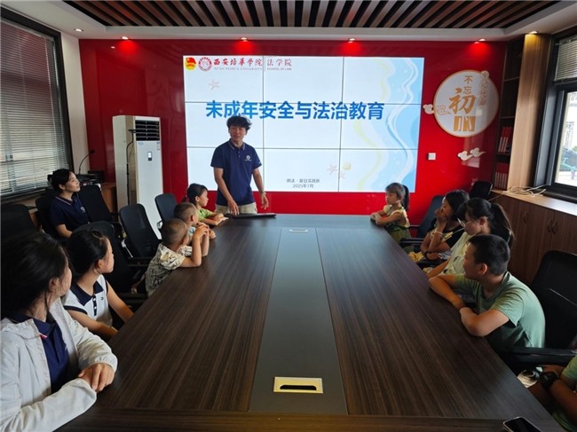 实践队队长翟屹晨运用生动鲜活的案例和通俗易懂的语言为孩子们解读《中华人民共和国未成年人保护法》,系统阐述了未成年人在教育、生活、身心健康等方面享有的合法权益。家庭保护是基石。翟屹晨用生动的小故事,讲述了父母或监护人对孩子应尽的抚养、教育和保护义务。当讲到“不得对未成年人家庭施暴”时,坐在后排的一个小男孩下意识地摸了摸胳膊,这个细微的动作被细心的队员捕捉。学校保护是常态。队员们以情景模拟的方式,演示了校园欺凌发生时如何寻求老师帮助、如何保留证据。社会与司法保护是后盾。翟屹晨强调,未成年人是祖国的未来,保障他们的合法权益是全社会的共同责任,鼓励孩子们学会运用法律武器保护自己。