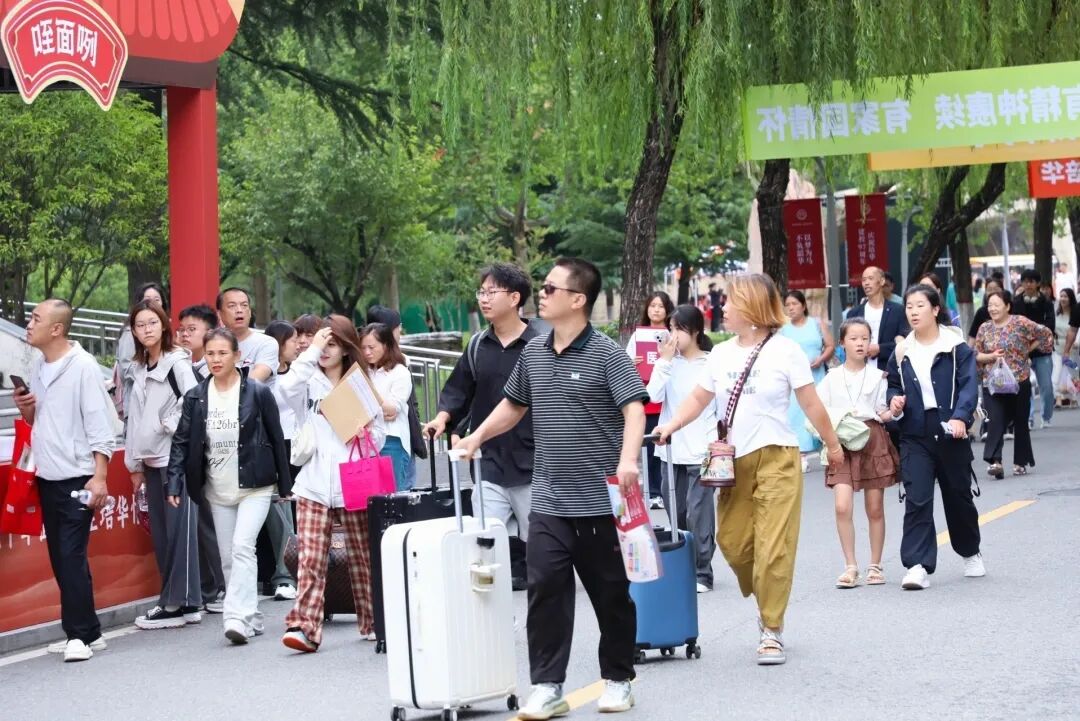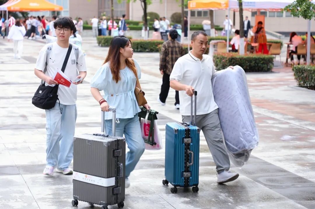 校园里随处可见家长陪伴新生的身影,他们细心帮着孩子提行李,沉甸甸的行囊里,装着的不仅是生活用品,更是家人浓浓的关爱与不舍。