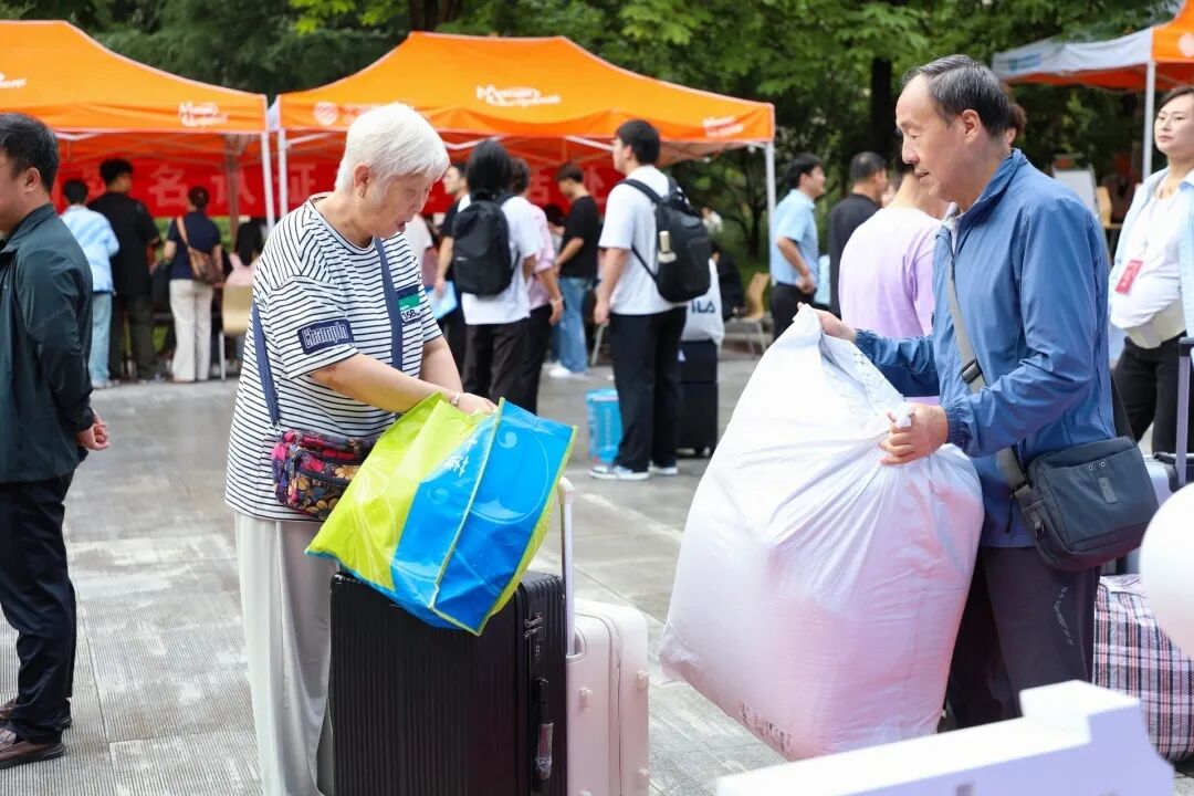 在高铁站、火车站、地铁口等,学校一如既往地设置了接待处,为新生提供路线指引、行李搬运,交流答疑等贴心服务,全力保障入校报到顺畅高效。