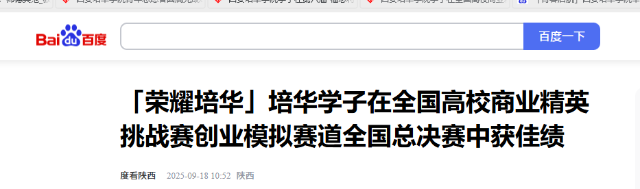 自比赛启动以来,培华学子积极参与,经初选共派出四支队伍参赛。通过知识赛和创业模拟等多个校赛环节的激烈竞争,最终两支队伍成功晋级全国总决赛。2025年7月13日,在全国总决赛中,面对来自全国各地高校的优秀团队,我院学子沉着应对、团结协作,展现出良好的专业素养与创新潜力,经过多轮比拼,最终取得全国一等奖和三等奖的优异成绩。