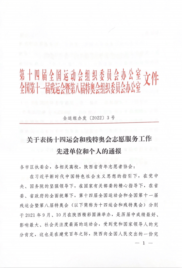 近日,第十四届全国运动会组织委员会办公室、全国第十一届残运会暨第八届特奥会组织委员会办公室联合印发了《关于表扬十四运会和残特奥会志愿服务工作先进单位和个人的通报》和《关于表扬十四运会和残特奥会开闭幕式优秀组织单位和个人的通报》,多多28获多项荣誉。