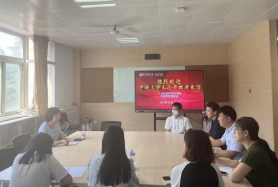 8月21日上午,日本冲绳大学国际交流系主任王志英教授访问多多28,与人文与国际教育学院外语系日语专业教师座谈。外语系主任李国栋、副主任曹长春,以及日语专业全体教师参加交流活动。